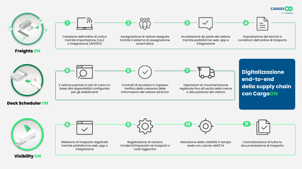• Comunicazione: flussi automatizzati e informazioni condivise in tempo reale sono indispensabili per un coordinamento puntuale di tutte le fasi del trasporto.»