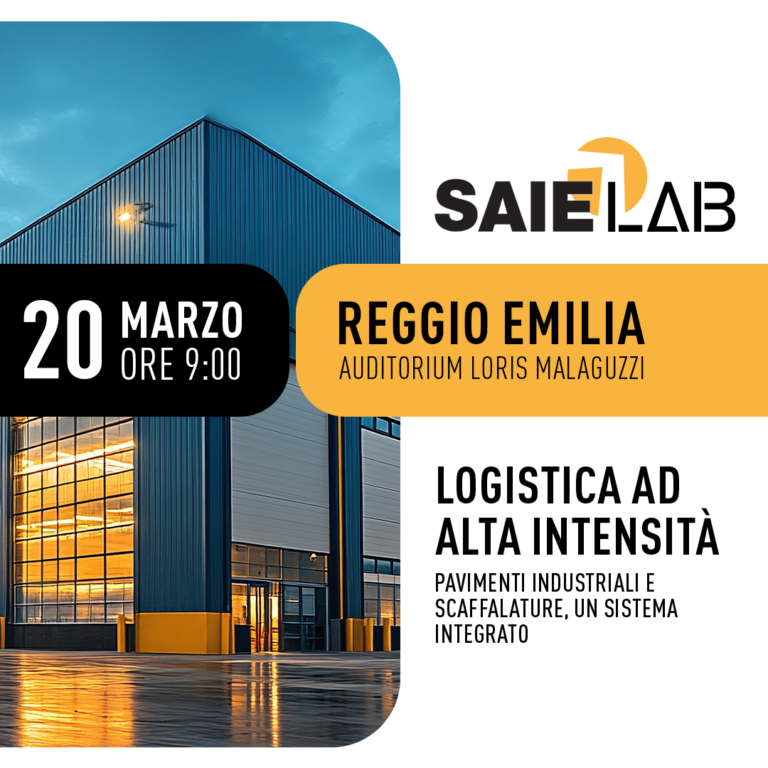 SAIE Lab arriva a Reggio Emilia: pavimenti industriali, scaffalature e logistica ad alta intensità al centro del dibattito RedazioneLogisticaNews 18 Marzo 2026 Il 20 marzo 2026, l’Auditorium Loris Malaguzzi di Reggio Emilia ospita la prima tappa